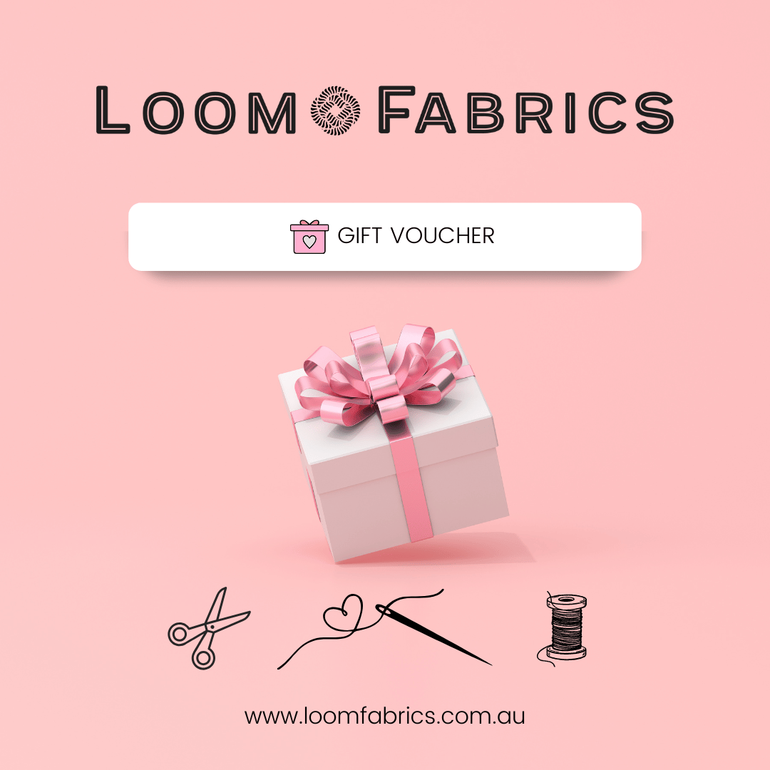 Buy a Loom Fabrics Gift Voucher for yourself or a friend – redeemable online for all products including classes, fabrics, and purchases.
