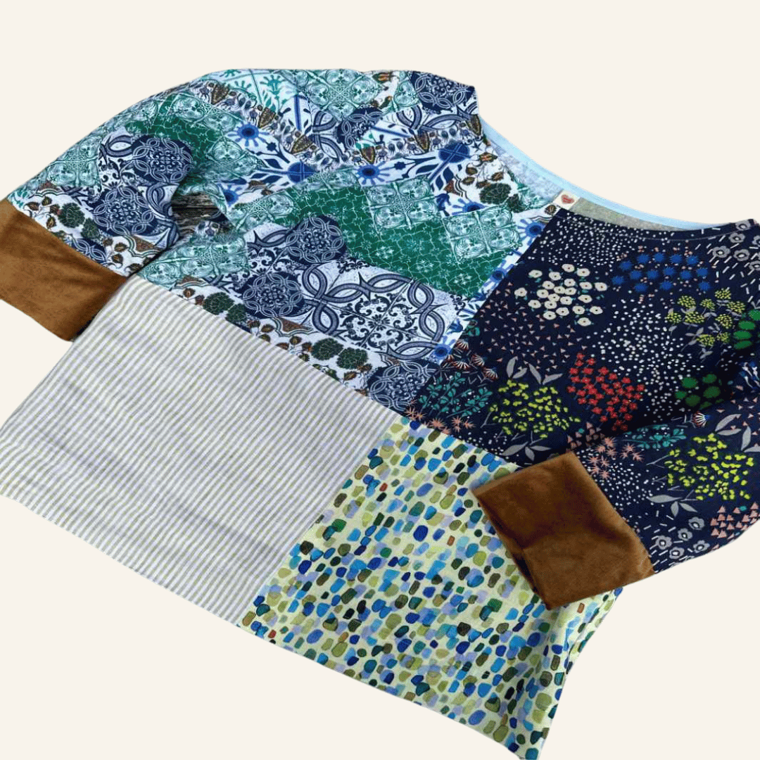 Worried you won’t be able to stitch it on your own? I’ll walk you through – every step of the way in our series of video chunks that take you through and explain the processes. You can follow along the video with your Remix Boxy Top Playbook that comes with both pdf and paper patterns.