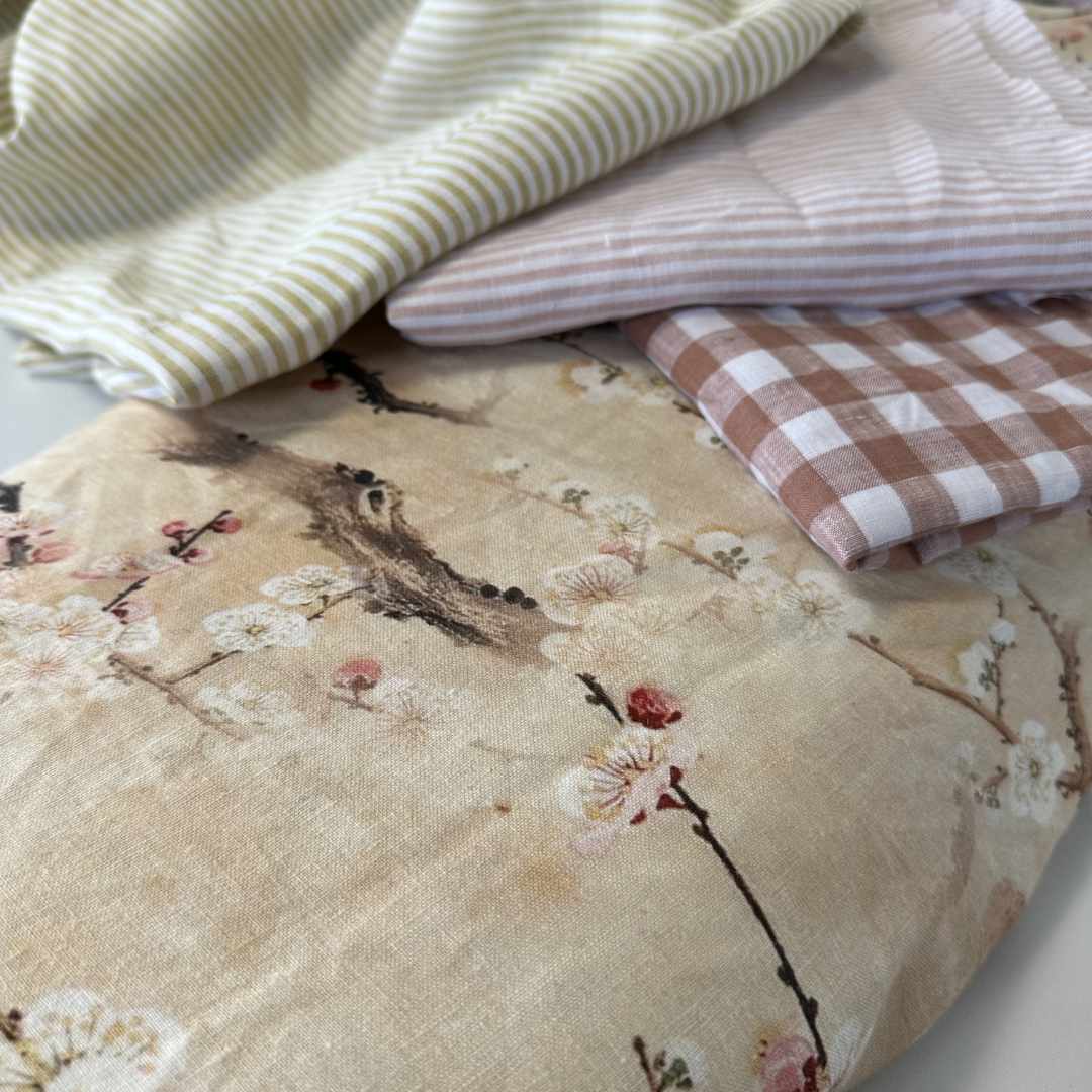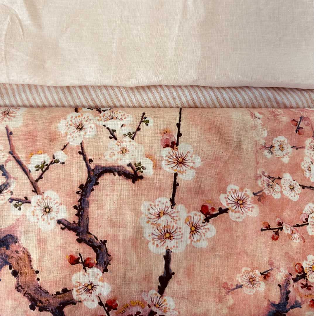 Muted printed gorgeous cherry blossom hand painted looking motifs make this a cheerful and uplifting design choice 🤩